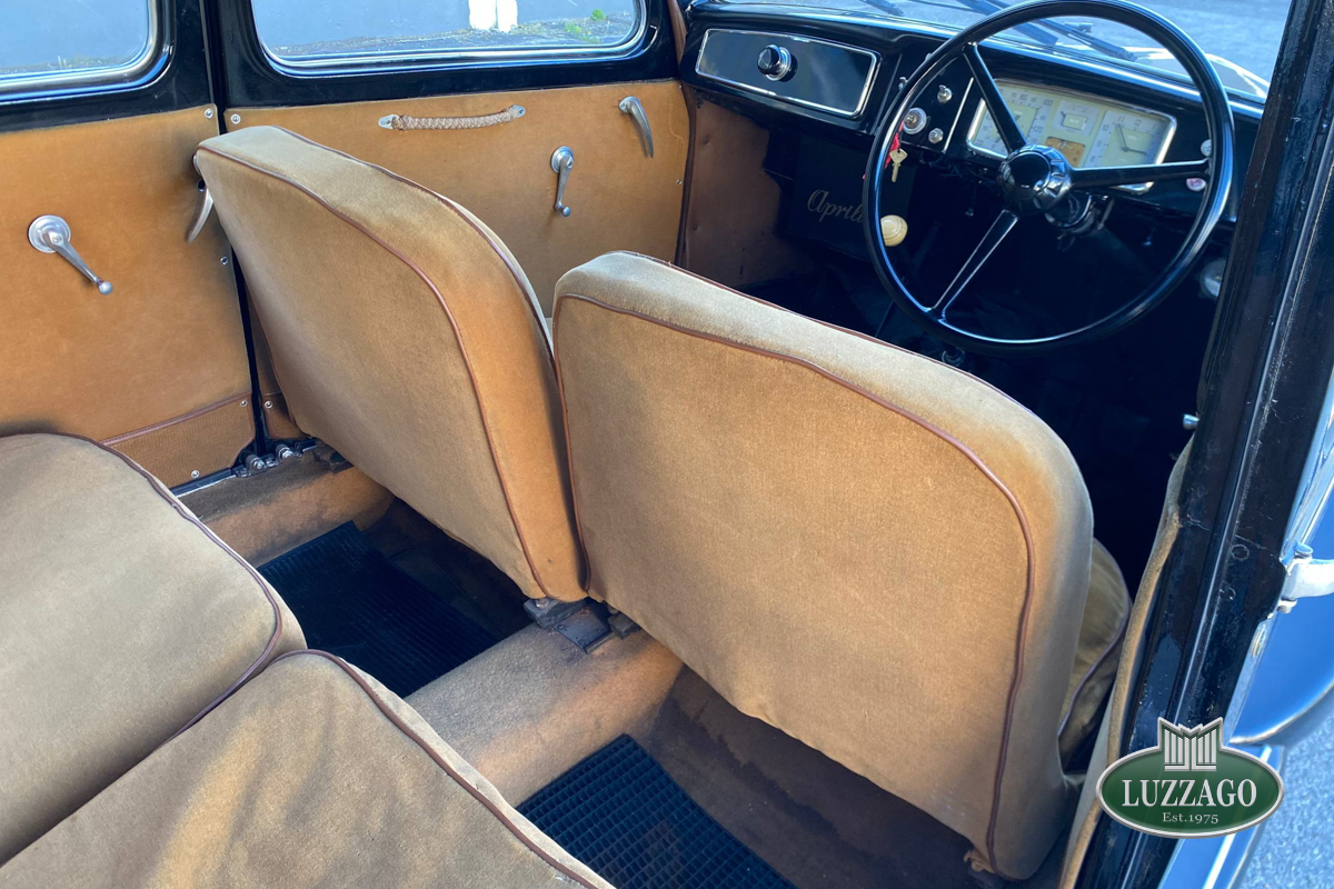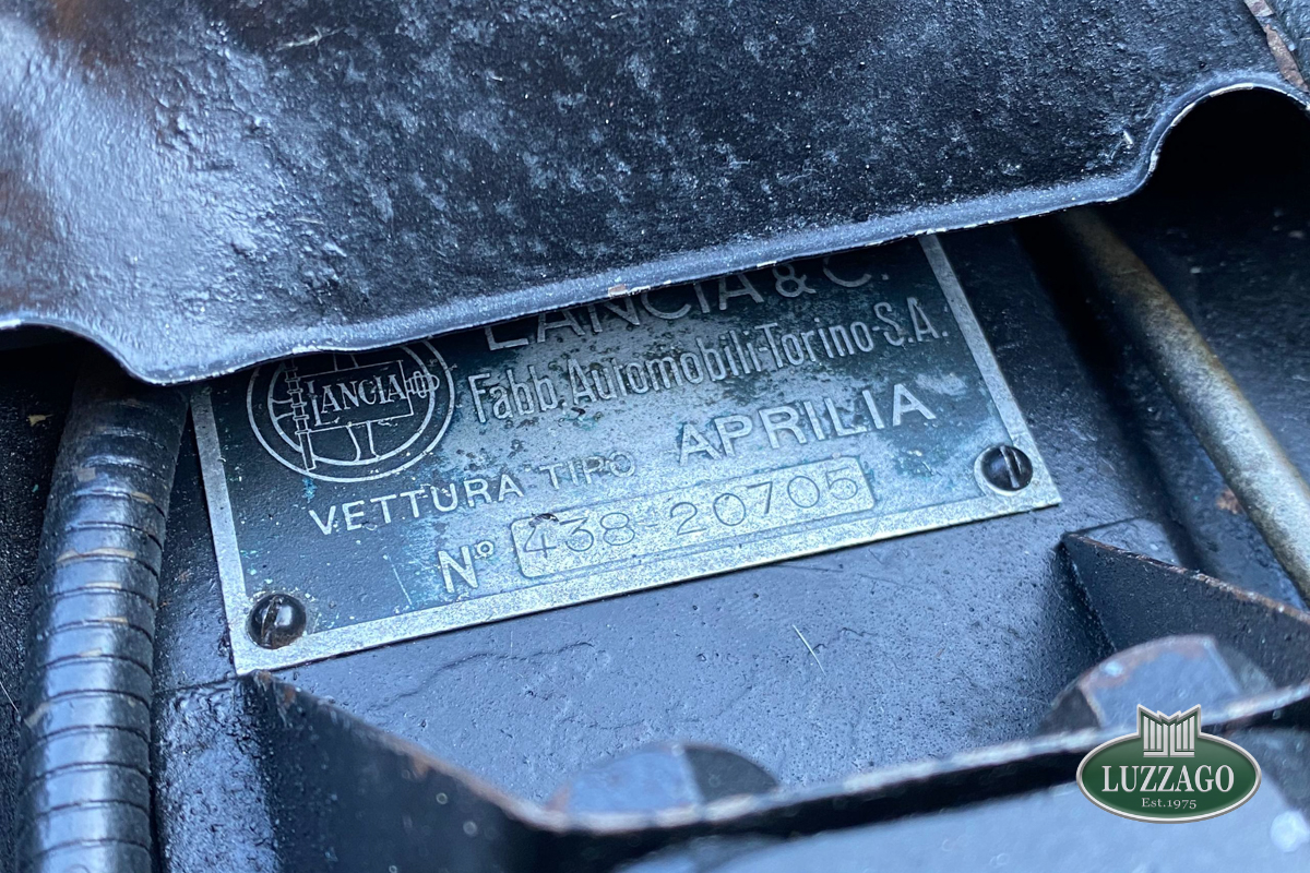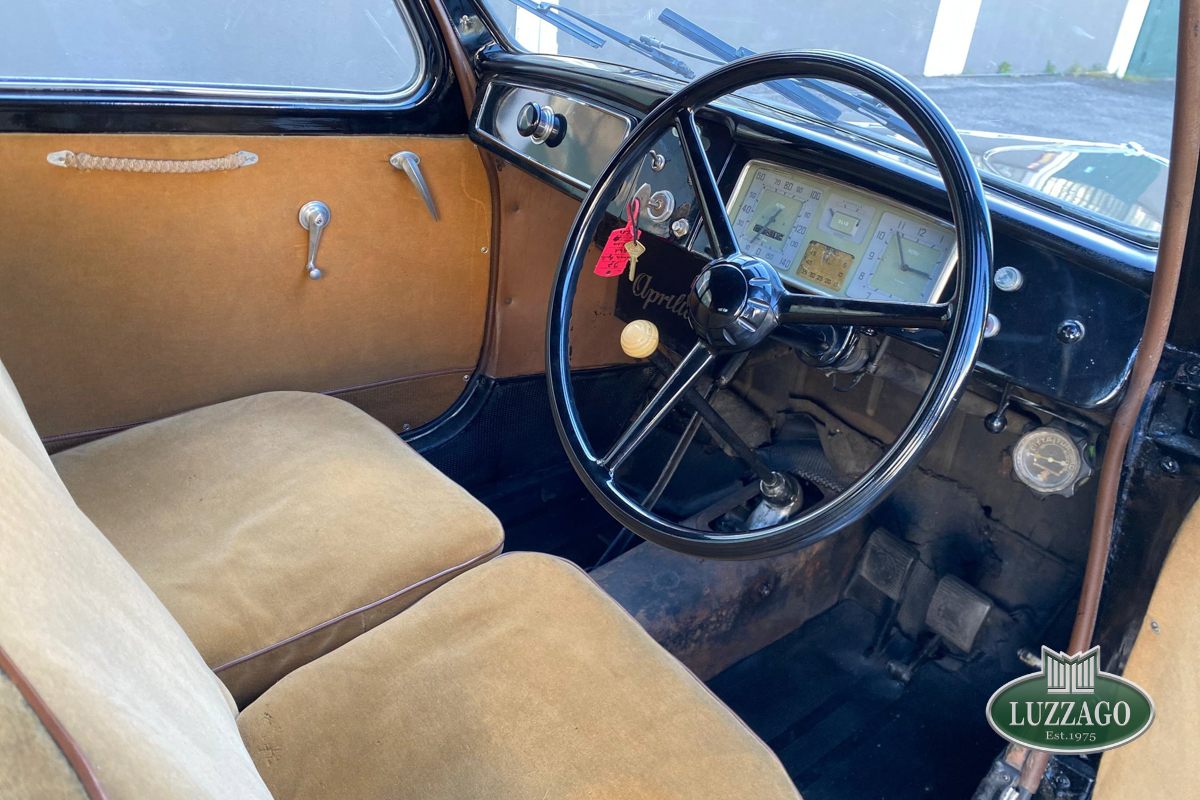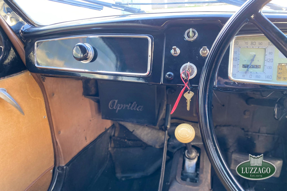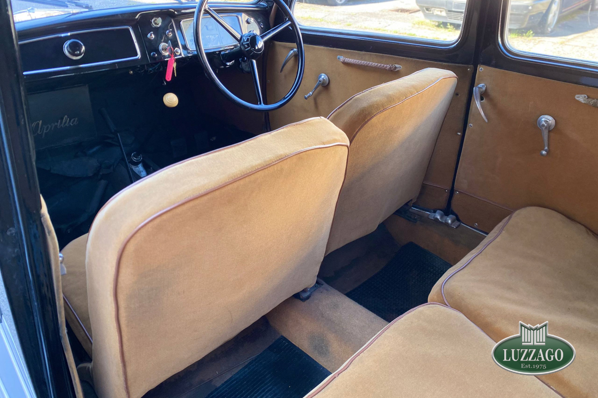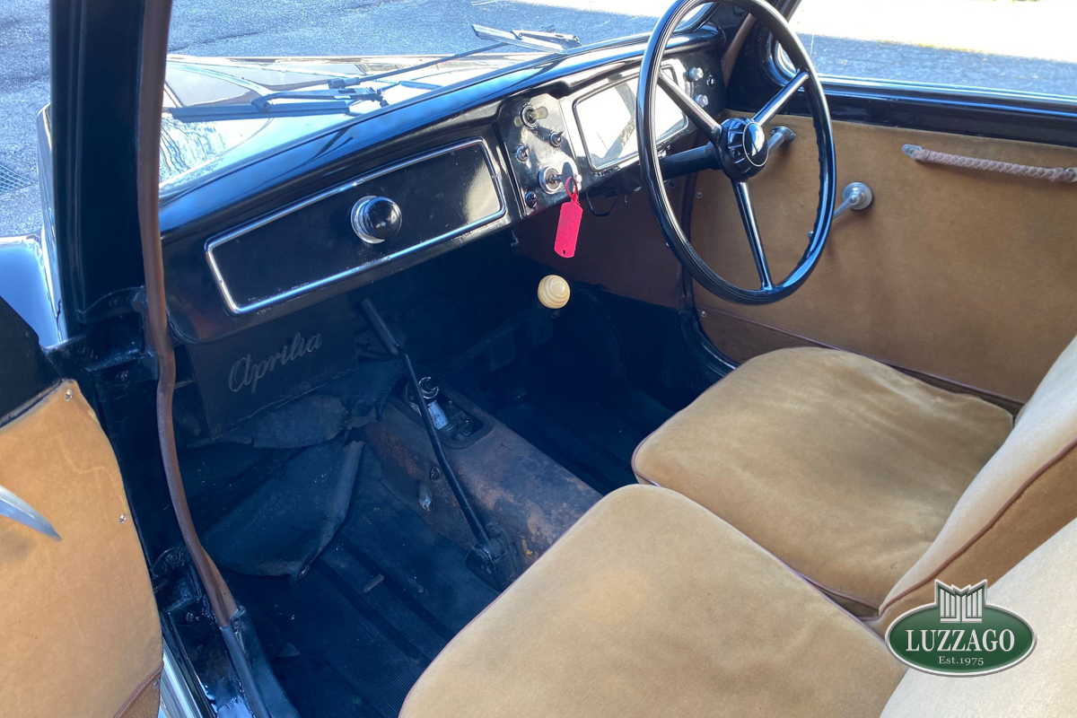 Beautiful Lancia Aprilia, built in February 1940. Mille Miglia-eligible, it has black license plates from a second Rome registration. It is registered with the CRS ASI and has an FCA Certificate of Origin.