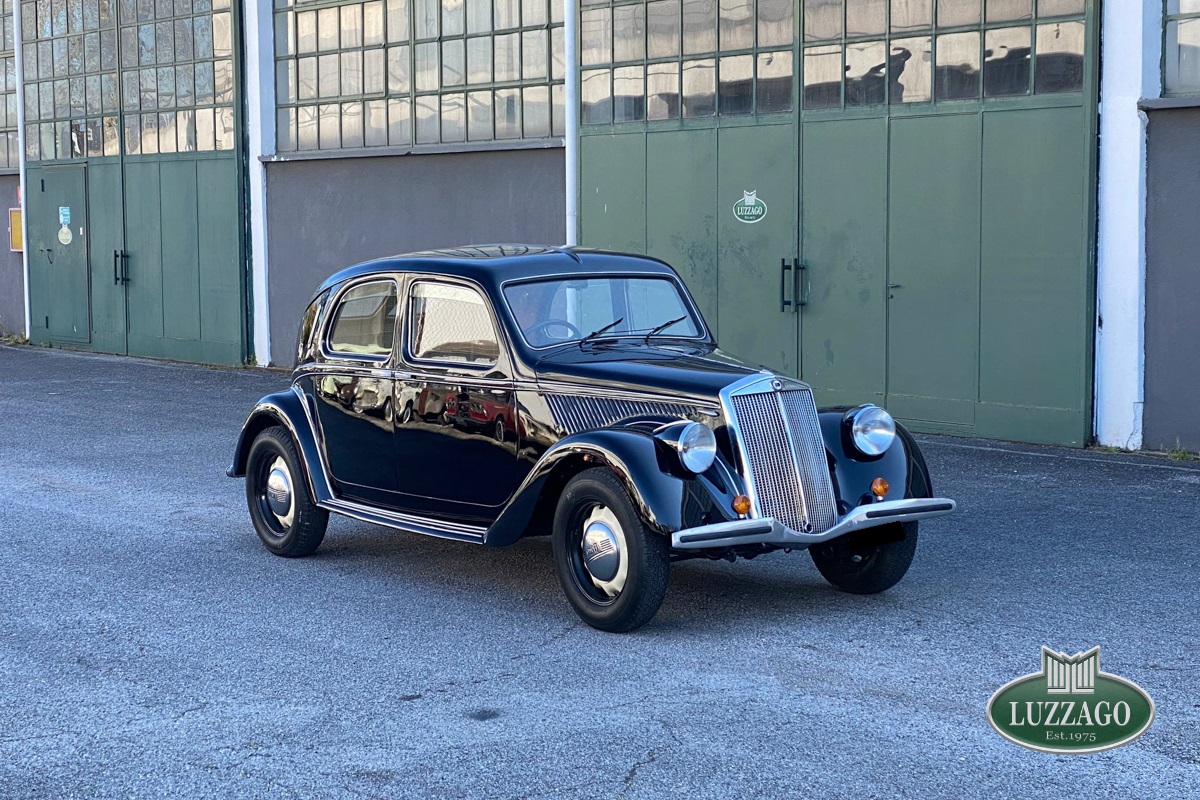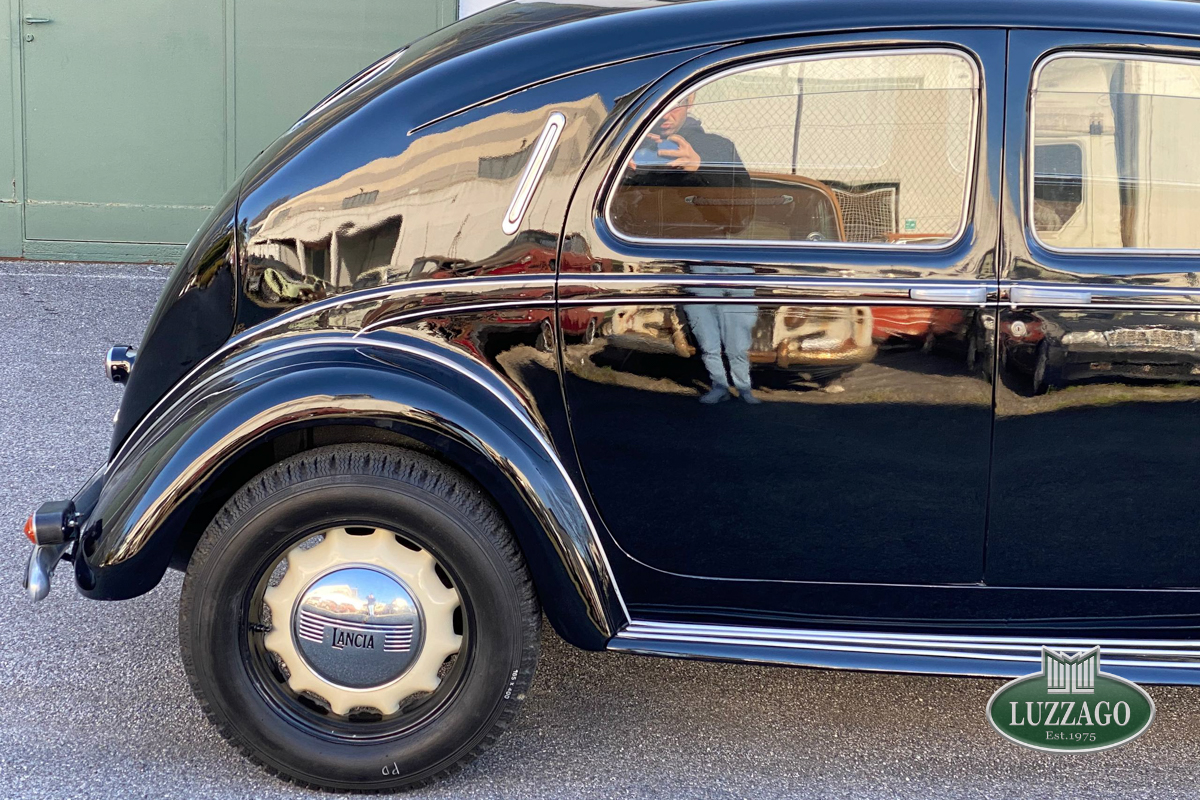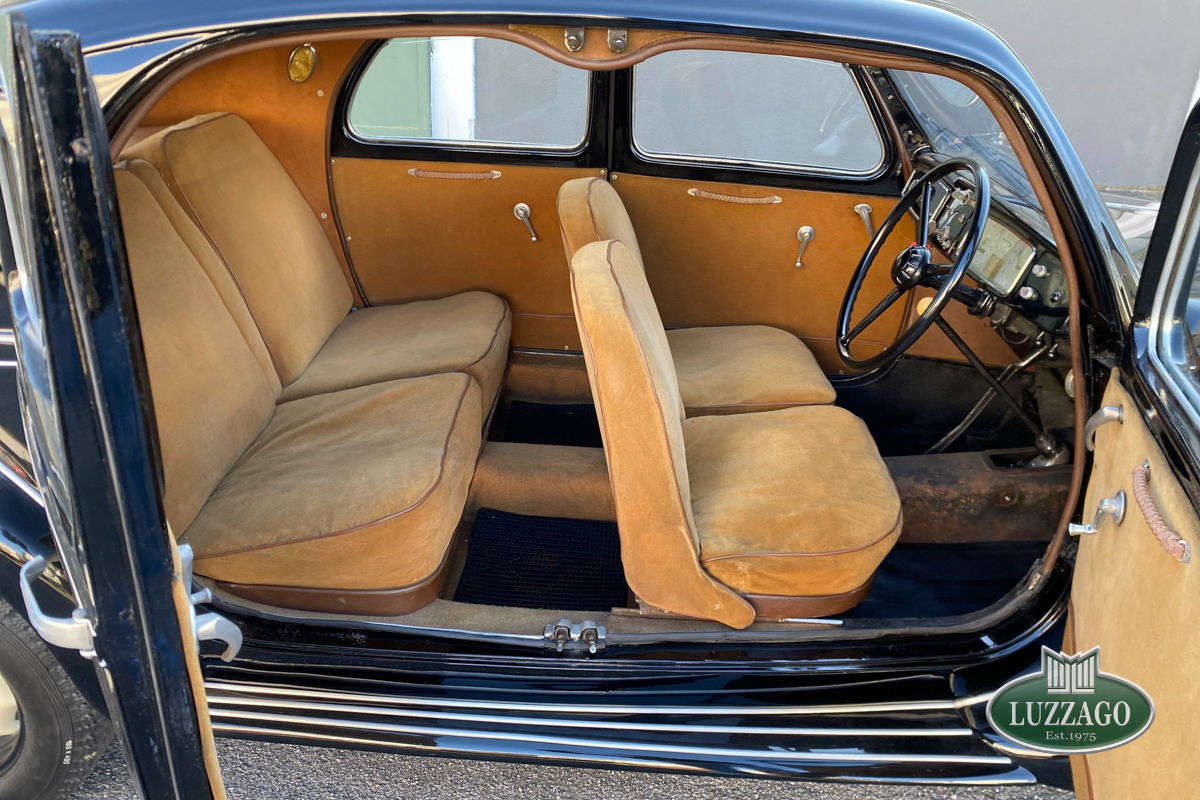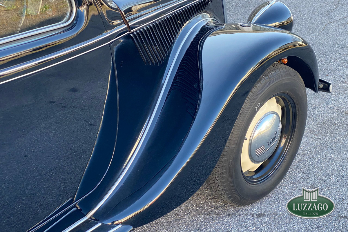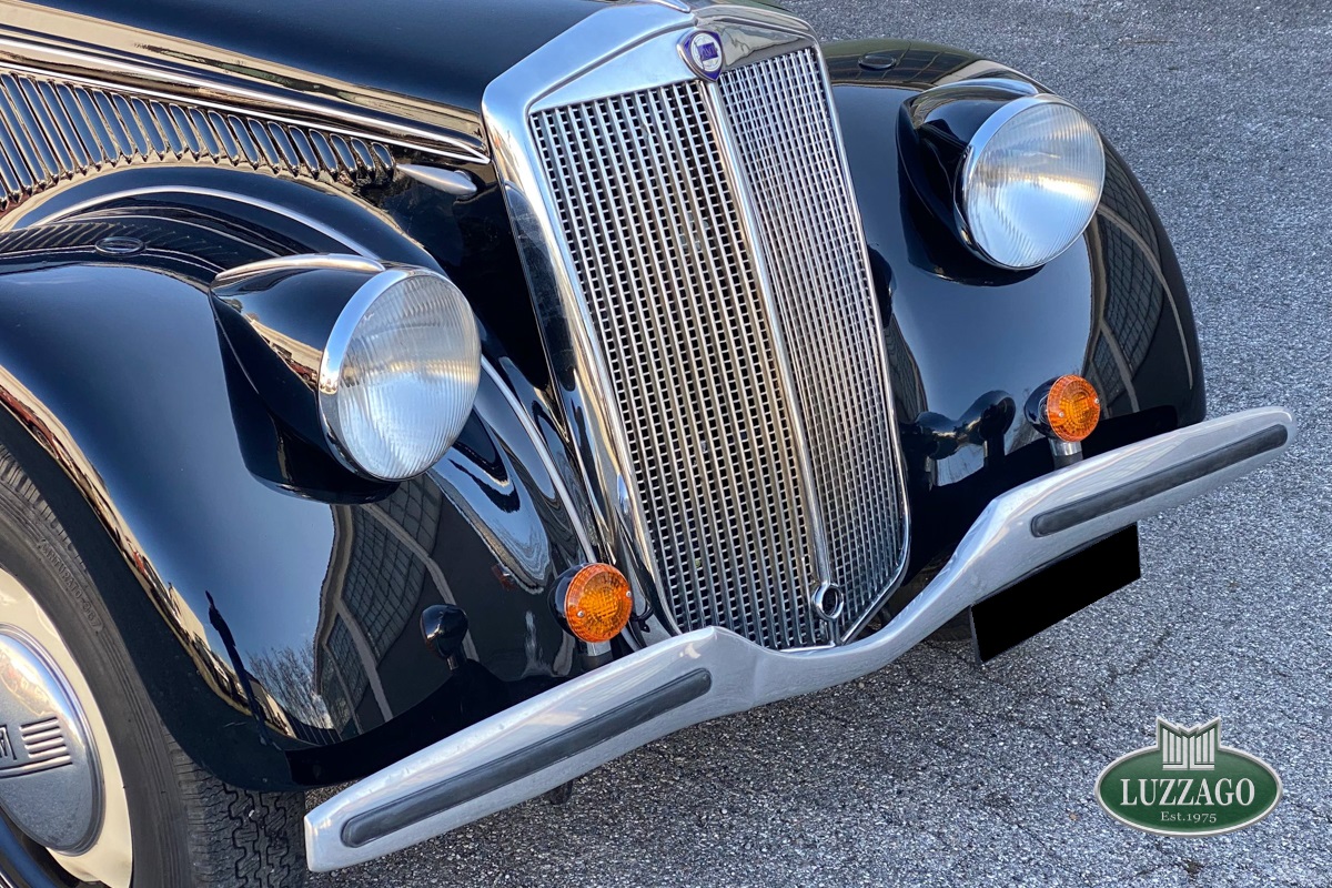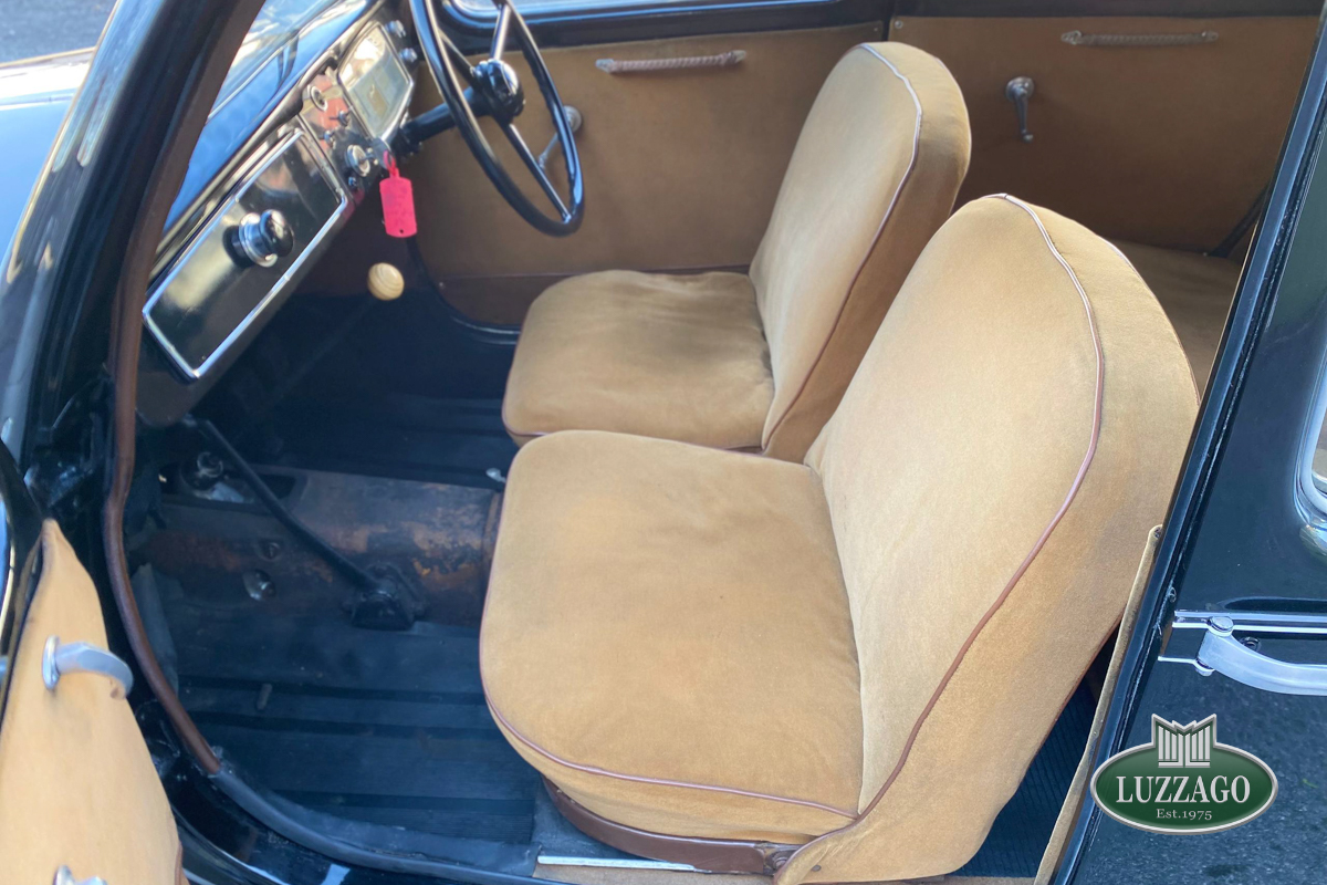 Beautiful Lancia Aprilia, built in February 1940. Mille Miglia-eligible, it has black license plates from a second Rome registration. It is registered with the CRS ASI and has an FCA Certificate of Origin.