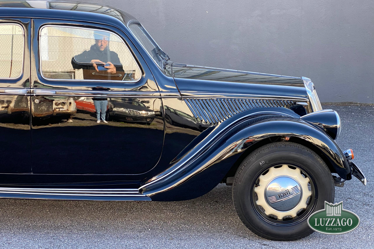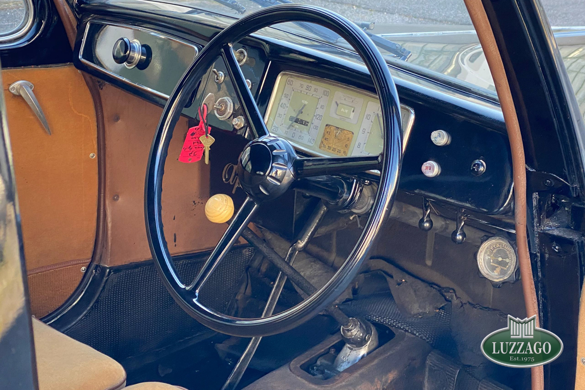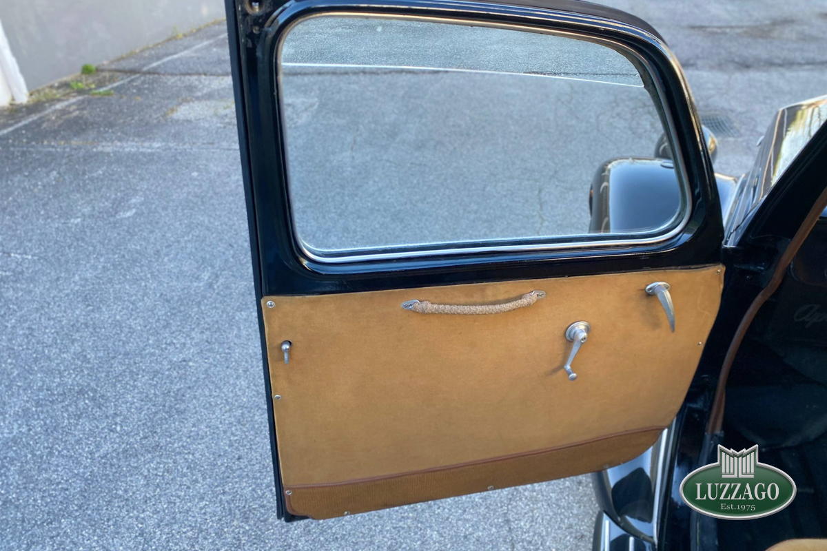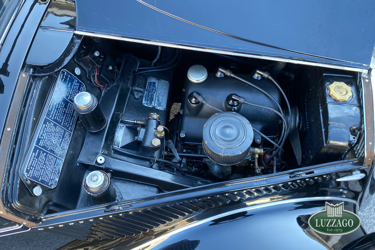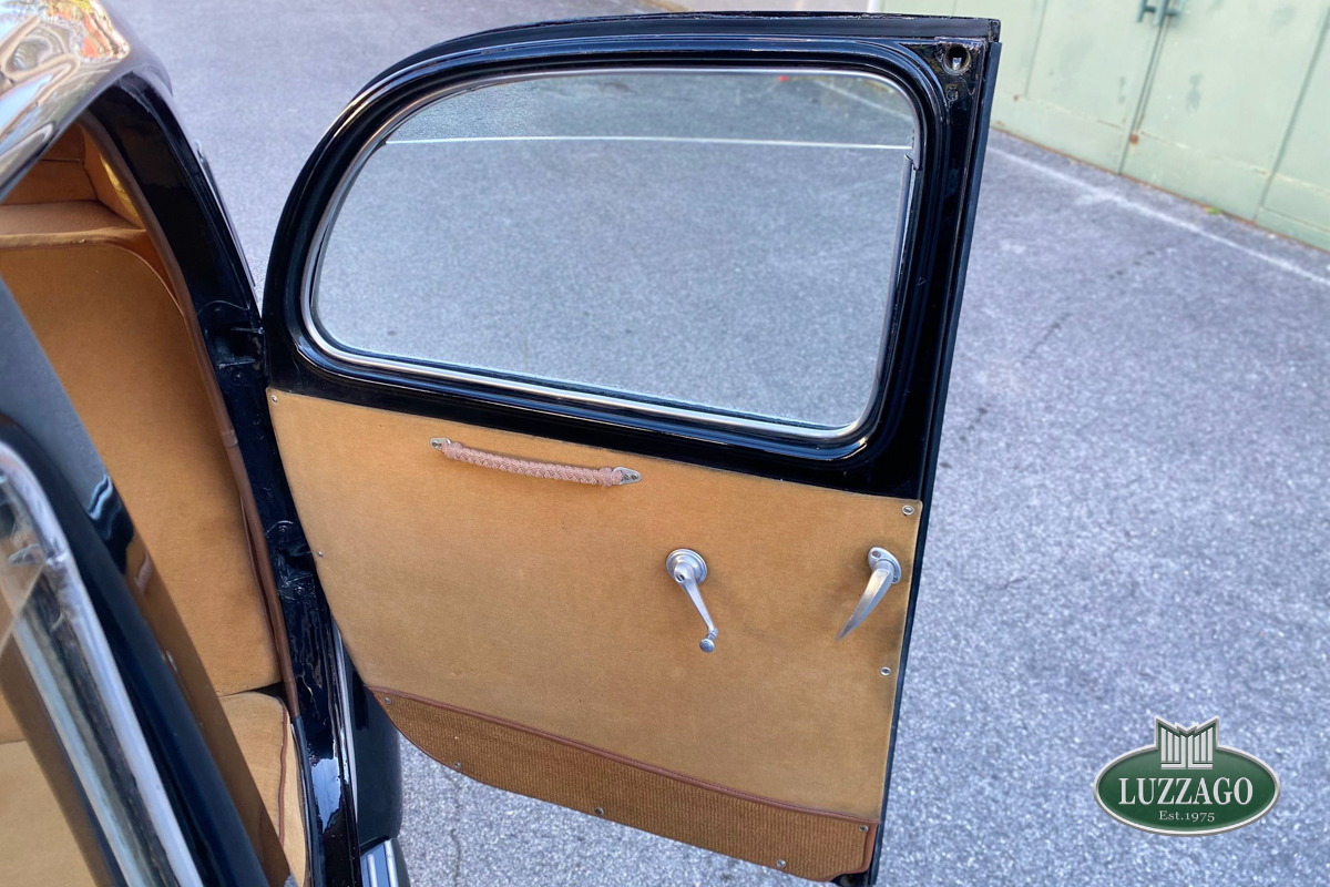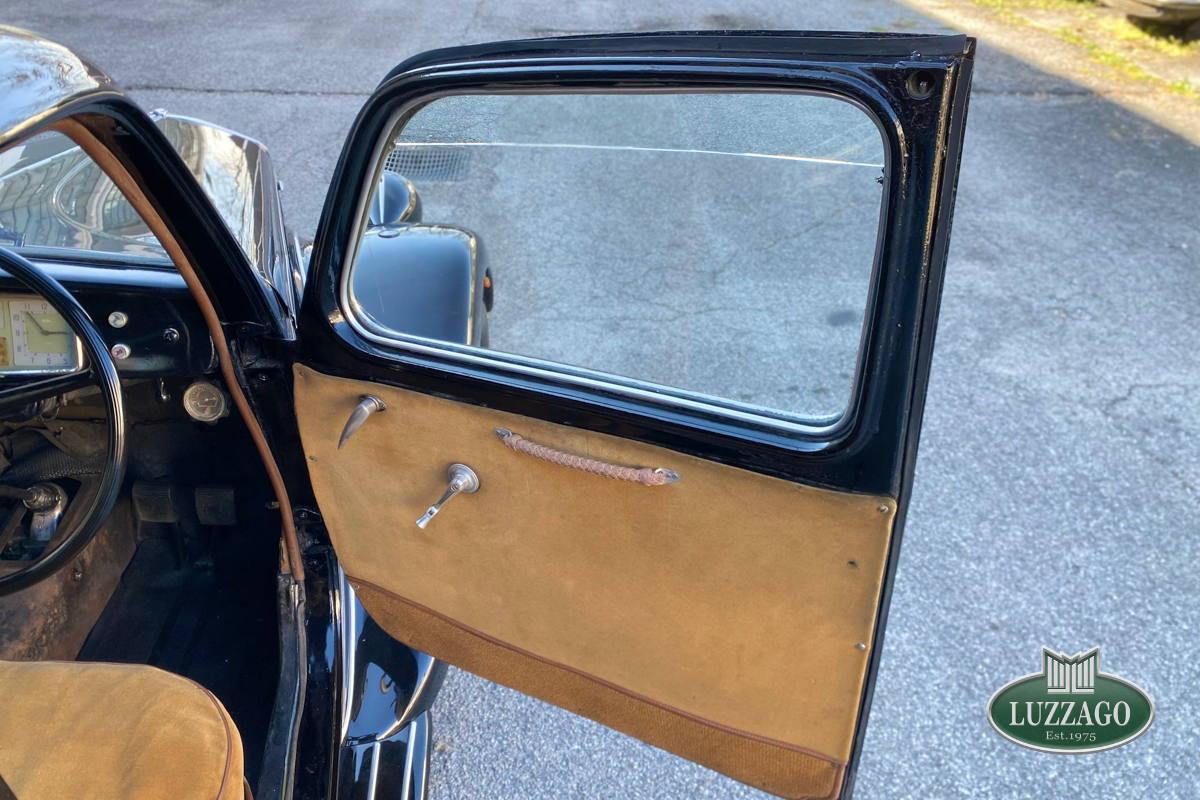 Beautiful Lancia Aprilia, built in February 1940. Mille Miglia-eligible, it has black license plates from a second Rome registration. It is registered with the CRS ASI and has an FCA Certificate of Origin.