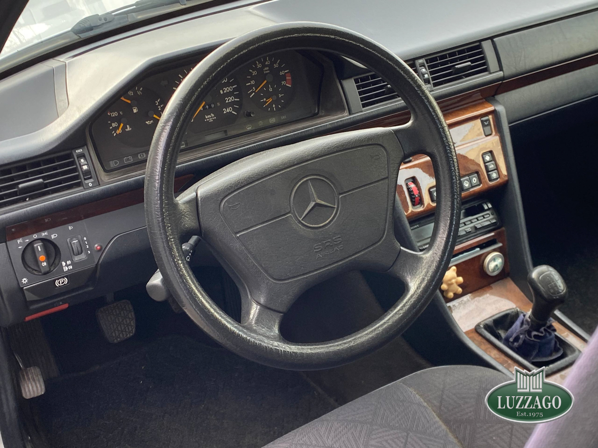 1994 Mercedes E200 with manual transmission and fabric interior. License plates and registration document from Brescia. The car was delivered new in Brescia by an Agricar dealer, with only one owner. 154,000 actual kilometers. Fully preserved and in perfect working order. Minor scuffing on the right front bumper. Maintenance performed over the years by Mercedes. ASI registered.